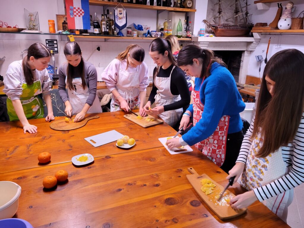 U školskoj kuhinji i kominu projekt je dobio svoj „najslađi dio“. Koristeći stare tradicionalne recepte, učenici su izrađivali: arancine, marmeladu ,eterično ulje i liker. Mirisi su ispunili školu i komin, a proizvodi su s ponosom kušani za marendu, uz palačinke koje su pripremile naše učiteljice Matijana i Marija.
